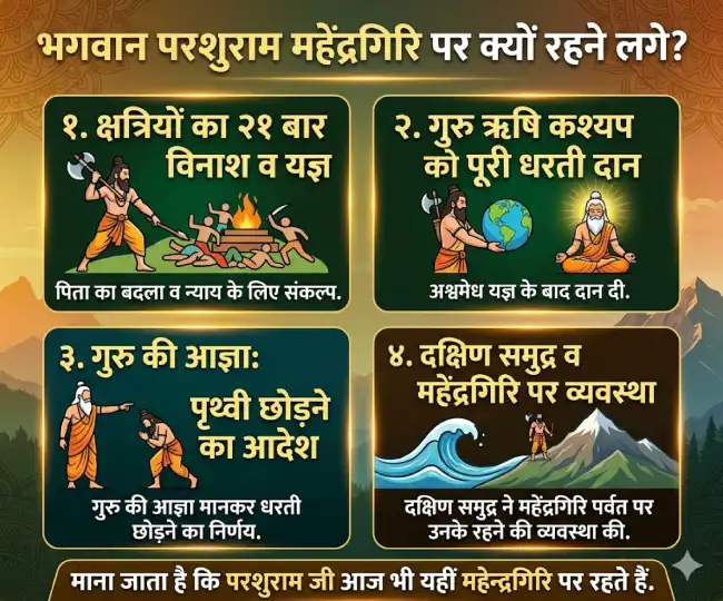 शास्त्रों में वर्णित है किभगवान विष्णु के अवतार परशुराम ‘अष्टचिरंजीवी’ में शामिल हैं, जो कलयुग के अंत तक जीवित रहेंगे। श्रीमद्भागवत और कल्कि पुराण में यह उल्लेख मिलता है कि वे आज भी महेंद्रगिरि पर्वत पर तपस्या कर रहे हैं। साथ ही यह भी माना जाता है कि वह सूक्ष्म रूप में वहां मौजूद हैं और समय आने पर प्रकट होंगे।